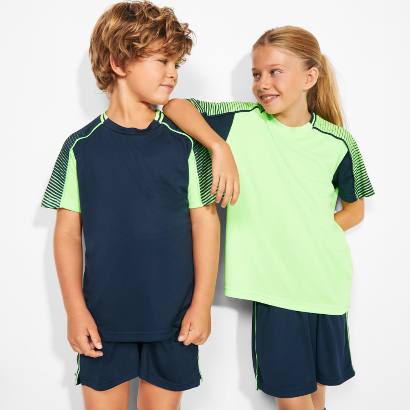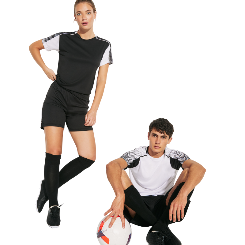 Draktsett med hjemme- og bortetrøye og shorts. 140 gsm 100% polyester, sublimerte detaljer på ermer.